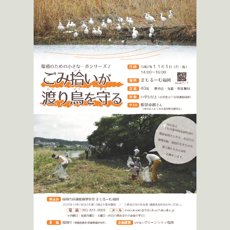 ■11/ 3(月祝)環境のための小さな一歩シリーズ第2回「ごみ拾いが渡り鳥を守る」