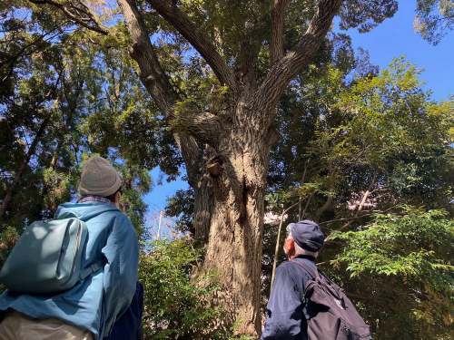 見上げながら、クスノキやモミジバフウとの幹肌の違いの話になりました。