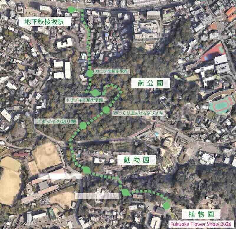 ● 時 刻 10:00 桜坂駅出発 〜 11:00 植物園会場到着