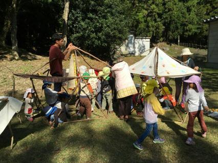 子ども達はお手伝いもとても上手で、道具を持ってきてくれたり、テントを