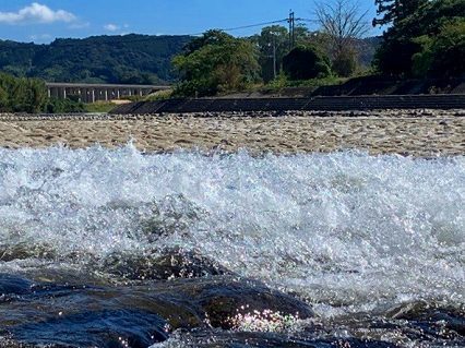 前半は山田堰について知る時間となりました。実際に山田堰に降りてみると、水量の多さや勢いのある流れに圧倒されます。