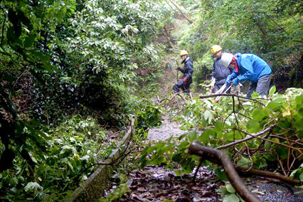 落とした枝葉を参加者みんなで片付けながら、少しずつ進みます。