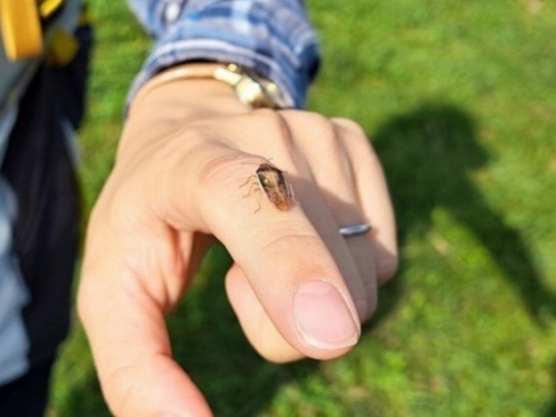 生きものはらっぱに着くと、早速しおりんが小さなカメムシを発見。