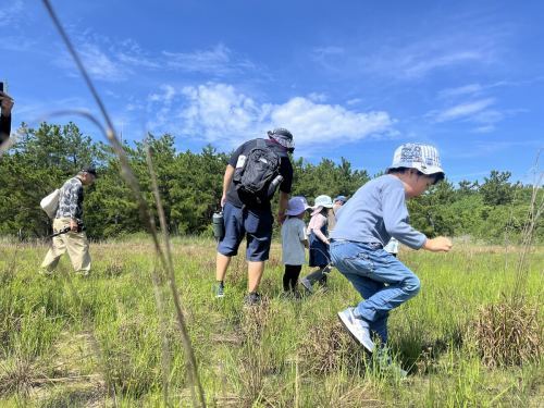 ちびっこたちに人気だったのは虫取り。トノサマバッタとウスバキトンボをギュッとつかまえました。