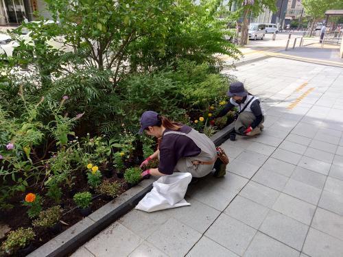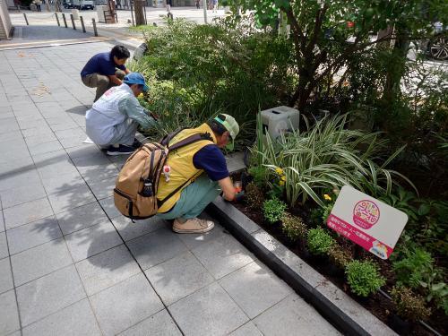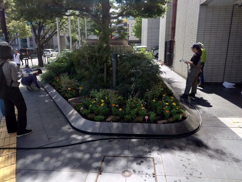 時折吹く風に秋の気配を感じる爽やかな日。(一社)福岡市造園建設業協会さんによる市庁舎花壇の植替え「花と蝶の憩いの場づくり」が行われました。