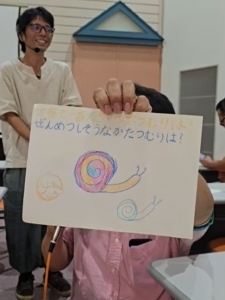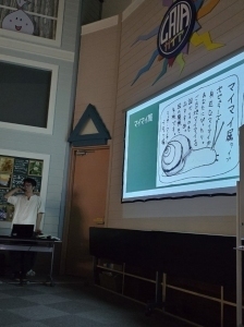 1枚ずつ発表していき、個性的なマイマイのイラストに笑ったり、野島さんの詳しい解説に聞き入ったり、和やかな雰囲気を会場みんなで楽しみました!