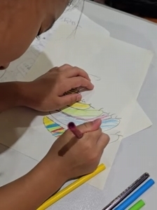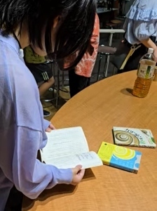 後半は野島さんへの質問や感想、自分で考えたオリジナルマイマイのイラストを紙に描きました。