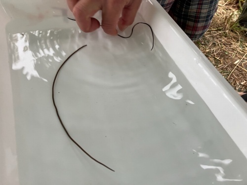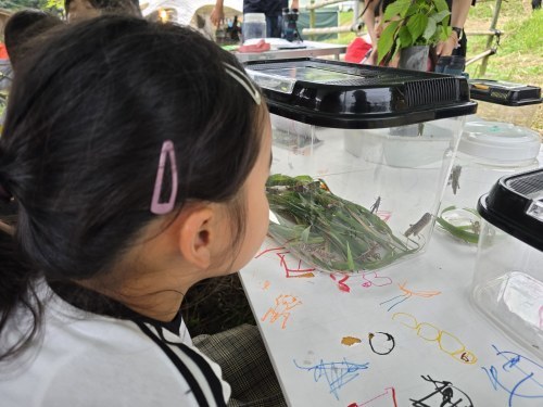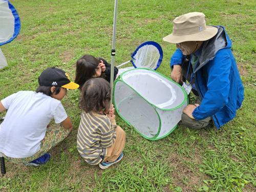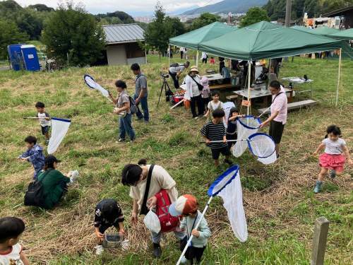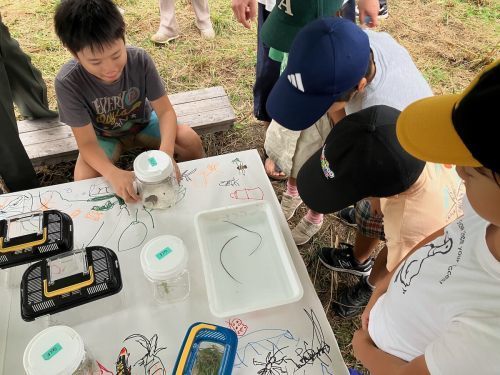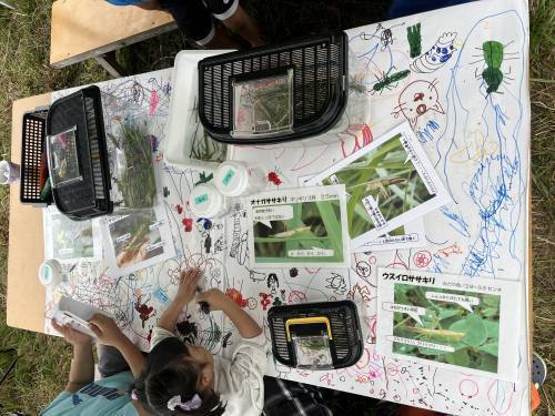 ミニ観察会も2回行いました。イナゴやチョウを追いかけまわしたり、スズメバチの動向を静かに見守ったり。捕まえたカマキリのお尻からハリガネムシが出て来てた時はみんな大騒ぎでしたね!