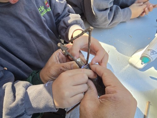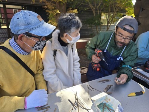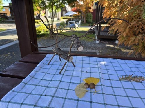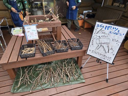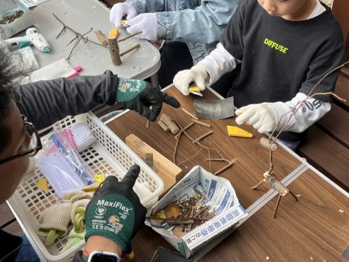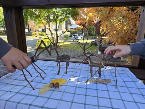 小さなお子さんから大人の方まで、枝と真剣に向き合う1時間。自分で選んだ枝でシカのような動物を作ったり、カマキリに挑戦してみたり。パーツの角度を少し変えるだけで表情やストーリーが生まれて奥深い面白さがあります。