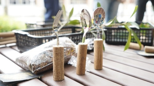 鴻巣山のマテバシイのひこばえを剪定した枝で作ったスプーンとフォーク。