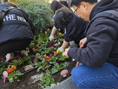 2025.12.7 韓国持続可能発展協議会のみなさまよりヒアリング 12/5(金)、来日された韓国持続可能発展協議会のみなさまから当団体の活動についてヒアリングをお受けしました。 ちょうど市庁舎花壇「花と蝶の憩いの場づくり」の実施日でしたので、一緒に花苗の植替えからスタート。土に触れながらだと緊張も和らぐ気がします。通訳いただきながらも、表情や身振り手振りでコミュニケーションもとれて楽しい交流のひと時でした。