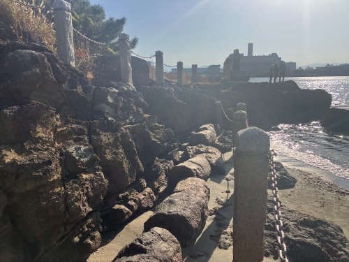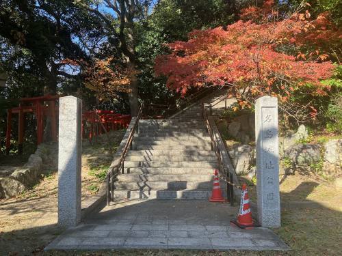 2025.12.13 まちなか森のガイドウォーク「テクテク名島」 今年最後のガイドウォークは東区の名島。いつもより少し長いコースをテクテク歩きましたよ。 西鉄貝塚線の名島駅から発電所とかつての「水の都」の雰囲気を想像しつつ、名島神社、名島城址公園、帆柱石、多々良川周辺を歩きました。少しパラつきましたが、盛りだくさんで楽しいコースでした。 見どころいっぱいの名島地区 名島城址公園、紅葉が残っていましたよ。 名島神社 帆柱石