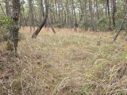 ヤブ化が進む松原。けもの道ができていました