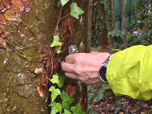 3/25(水) 雨の日の楽しみ、ケヤキの樹幹流を集めましたよ。